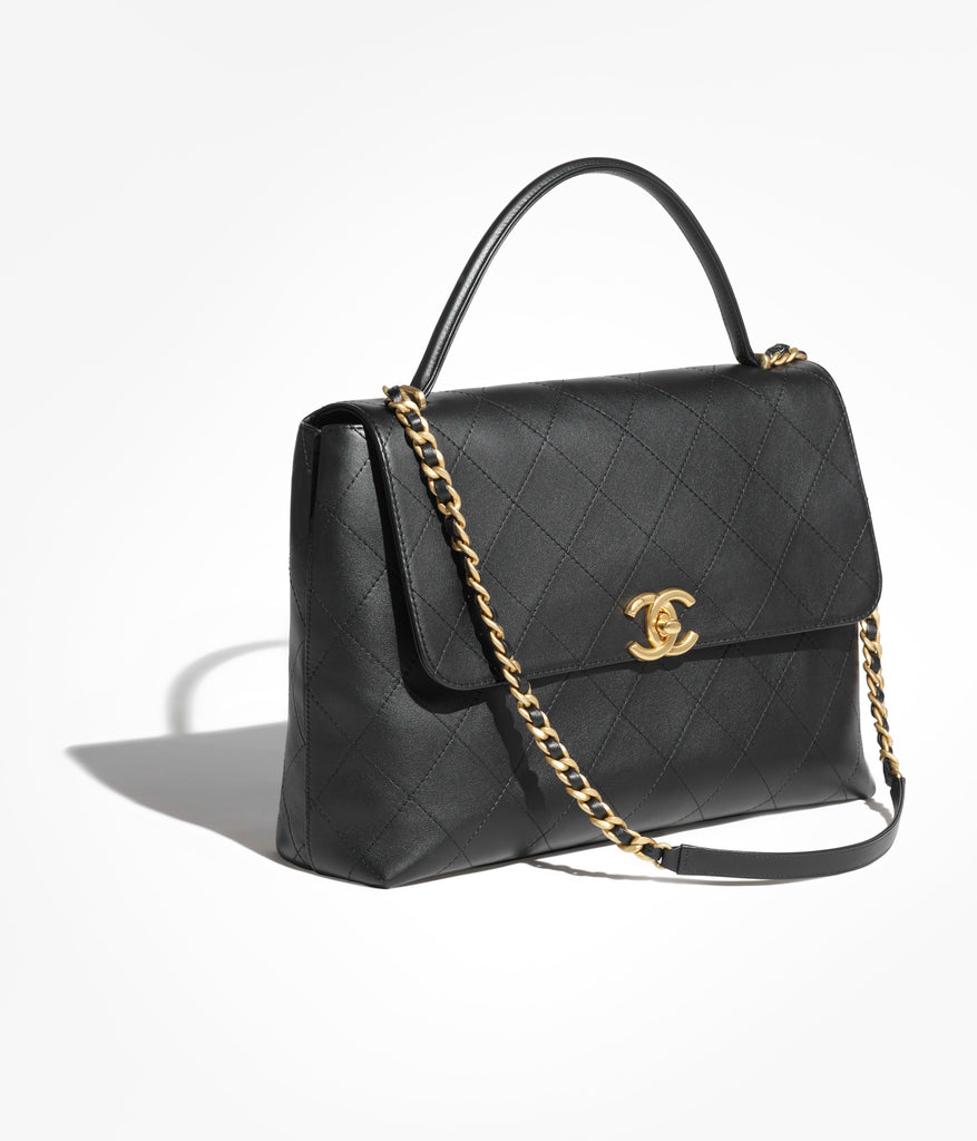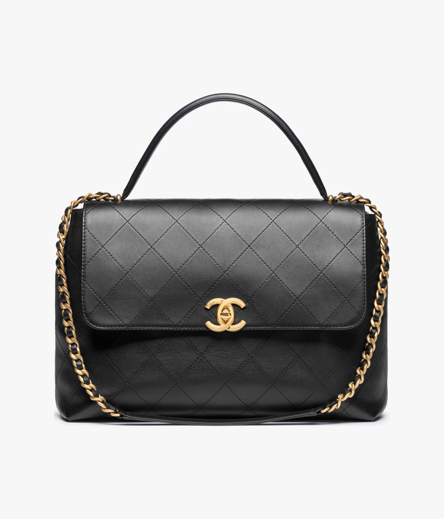 Maxi Flap Bag with Top Handle Calfskin & Gold-Tone