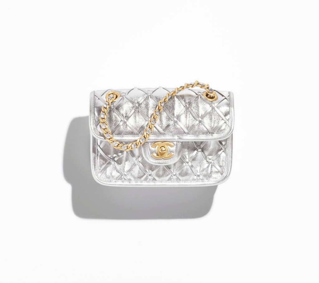 Material:Metallized Braided Calfskin & Gold-Tone Metal