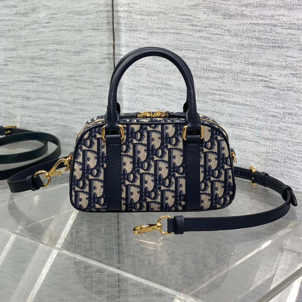 The small - sized D - Vibe bowling bag brings a casual sporty style. With a simple yet stylish design, it is exquisitely crafted from blue Obliaue printed fabric, being delicate and unique. It has an amazing capacity, easily holding items like water bottles, mobile phones, and cosmetics.