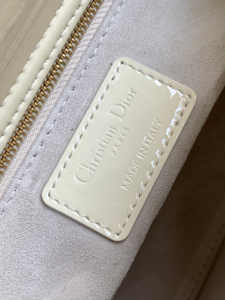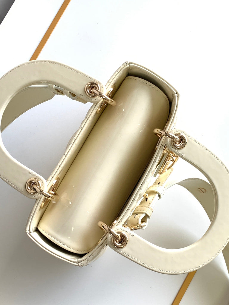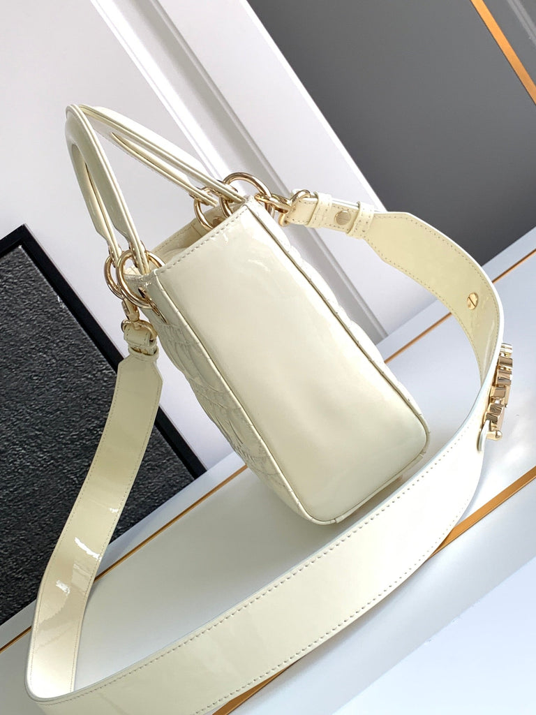 Lady dior Cream White Bag Patent/Calfskin, Detachable Strap