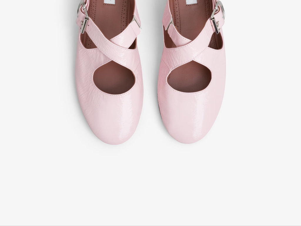 CRISS CROSS BALLET FLATS IN PATENT CALFSKIN PINK