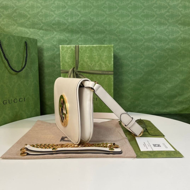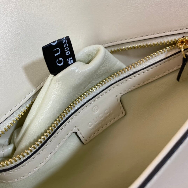 Coming from the House's archives, a round shaped version of the Interlocking G logo is reintroduced for GG Love Parade. Crafted from white leather, this shoulder bag is completed by a delicate chain strap, infusing this accessory with a refined feel.