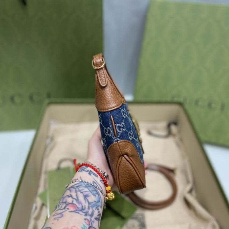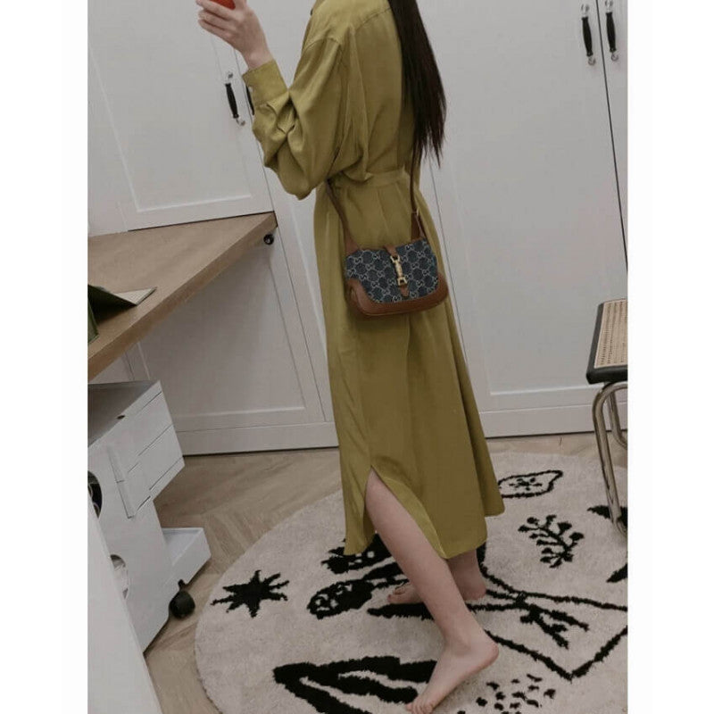 Brought back to the forefront, the recognizable shape is presented in denim with a GG motif and enhanced with an additional, detachable shoulder strap. Attached to the bag with a buckle closure, the second strap adds a contemporary feel to the archival style, providing new ways to wear?afrom top handle, shoulder to cross body. The Jackie 1961: available exclusively in GG stores and on GG.com