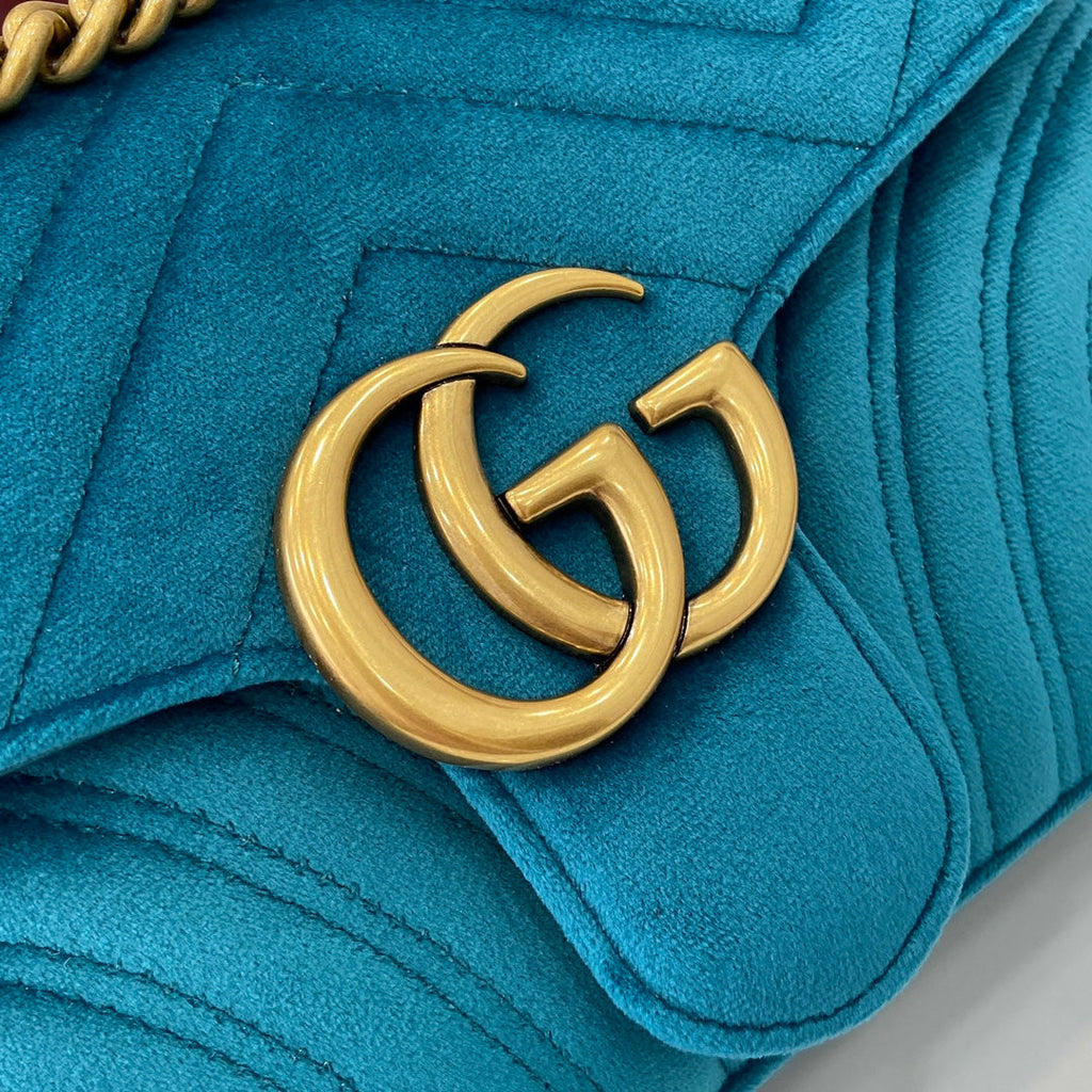 GG GG Marmont Light Blue Velvet Shoulder Backpack