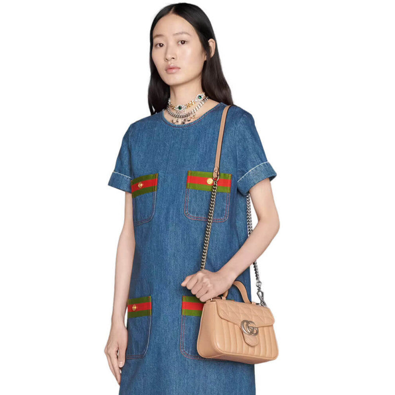 GG Marmont Rose Beige Matelasse Leather Mini Top Handle Bag 583571