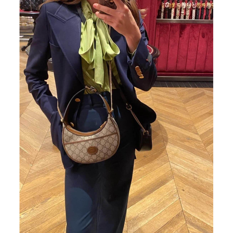 With a crescent silhouette in GG Supreme canvas, this mini bag has a defined retro feel. Each collection is a journey through different decades and eras, combining vintage elements with archival codes or contemporary details to create new designs that exist outside of space and time. The mini accessory reflects this fascination with the past.