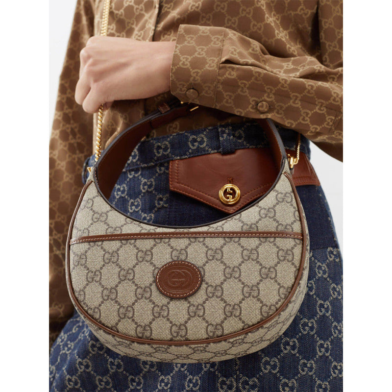 GG Half-Moon-Shaped Mini Bag with Interlocking G 726843 Brown