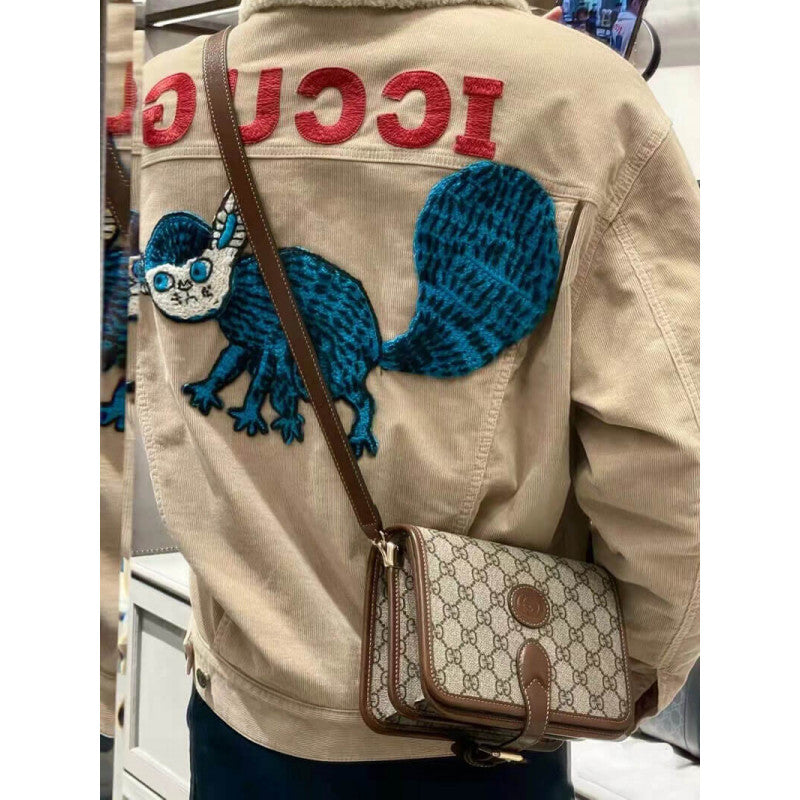 The Interlocking G has remained one of the most symbolic codes of the House since its introduction. The distinguishing emblem appears as a leather detail atop this shoulder bag. Completing the design's logo feel, the style is crafted from monogram canvas.