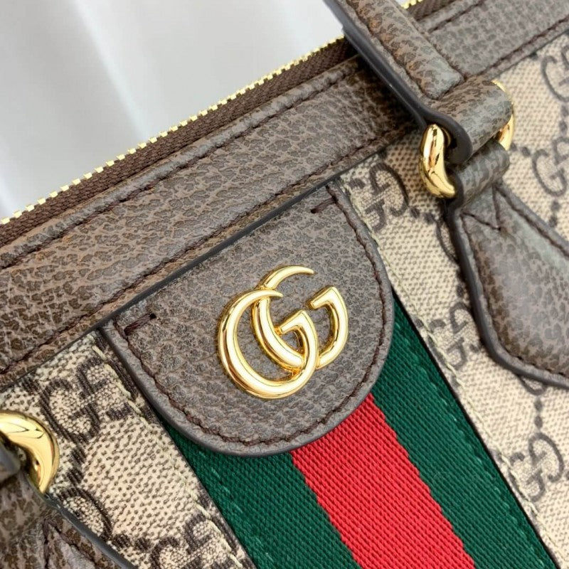 Imbued with retro-inspired references, the world of Ophidia evolves with the introduction of a medium top handle bag defined by a squared shape that recalls vintage designs. Crafted in GG Supreme canvas, the accessory features some of the most distinctive House codes, like the green and red Web stripe?aan homage to the equestrian world?aand the Double G from the '70s archives, here reworked with a sophisticated take. The bag is completed with a detachable shoulder strap which allows it to be carried in multiple ways.