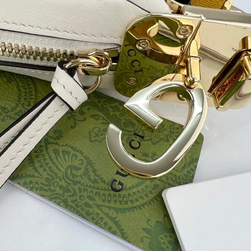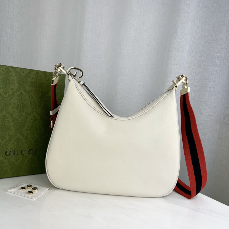 GG White Leather Attache Medium Shoulder Bag 702823