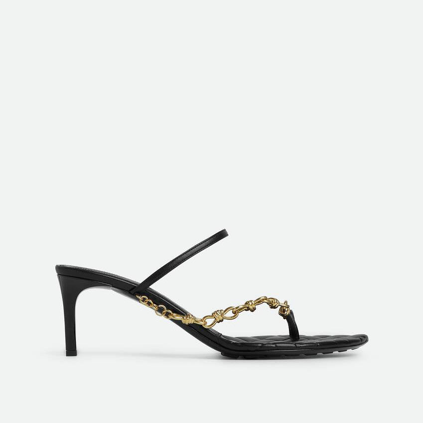 Leather thong sandal with signature knot chain embellishment