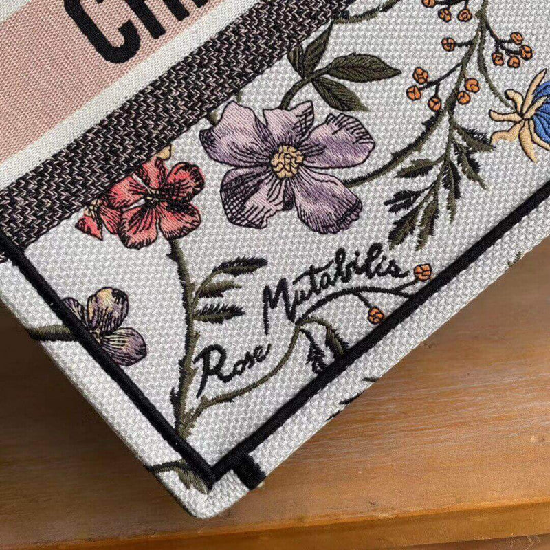 Christian   Small Book Tote Multicolor Rosa Mutabilis Embroidery M1296