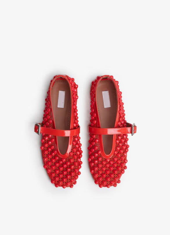 BALLET FLATS WITH STUDS ON FISHNET RED