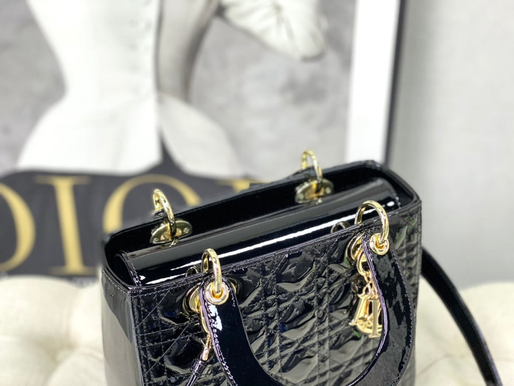 Lady Bag Black Patent, Gold Buckle, Practical Design