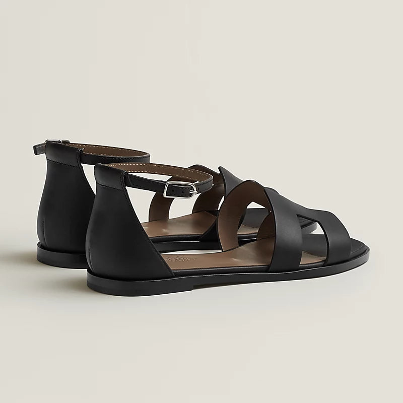 Sandal in calfskin with iconic 100H cut-out detail and adjustable ankle strap.