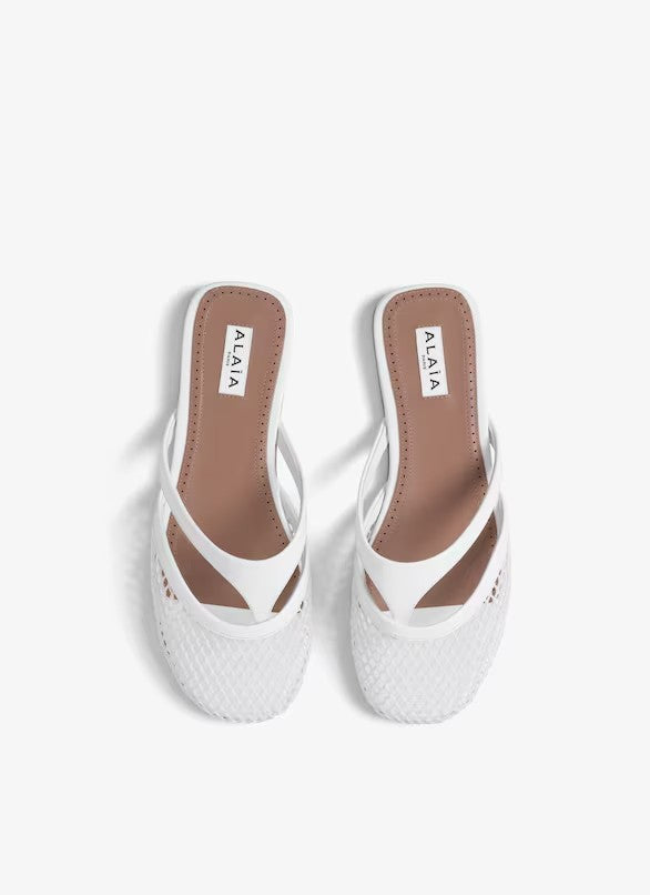 Flat fishnet thong mules