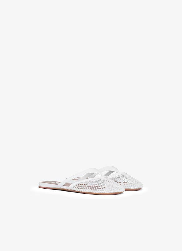 WHITE INFRADITO FLAT MULES IN FISHNET AND LEATHER