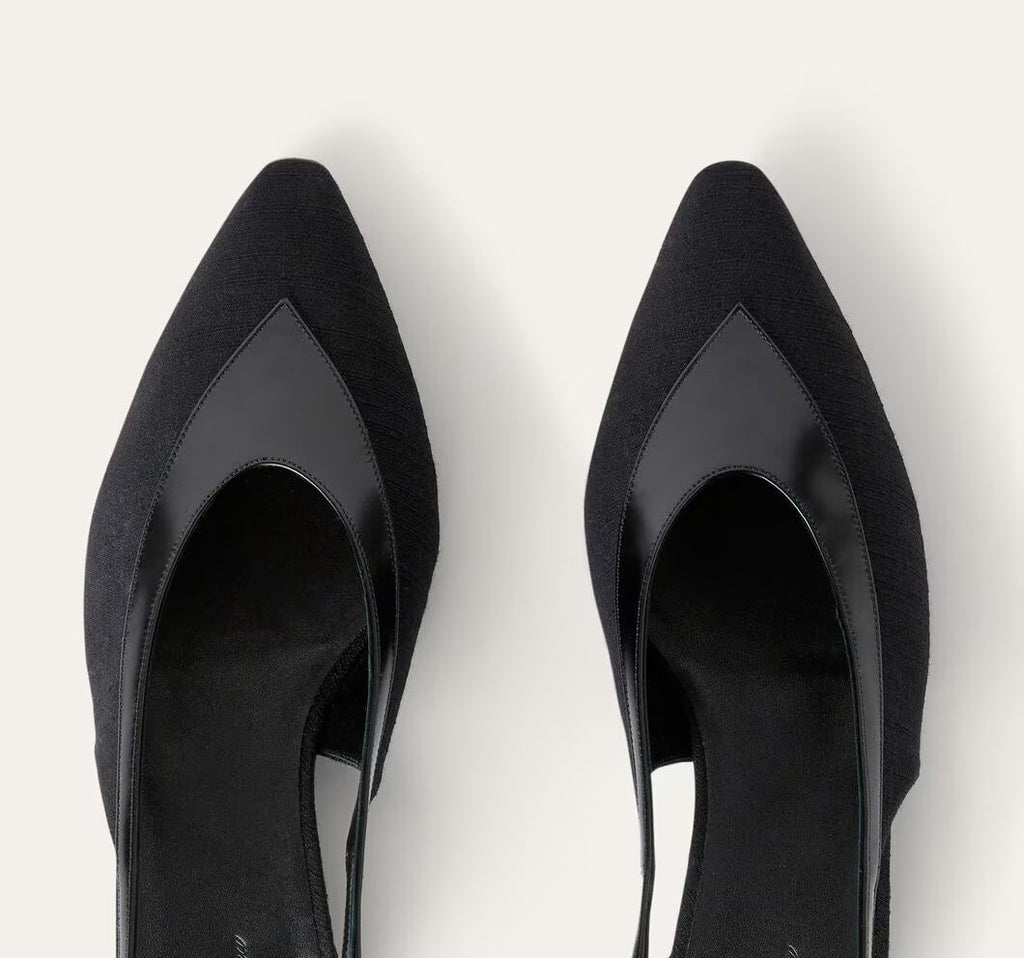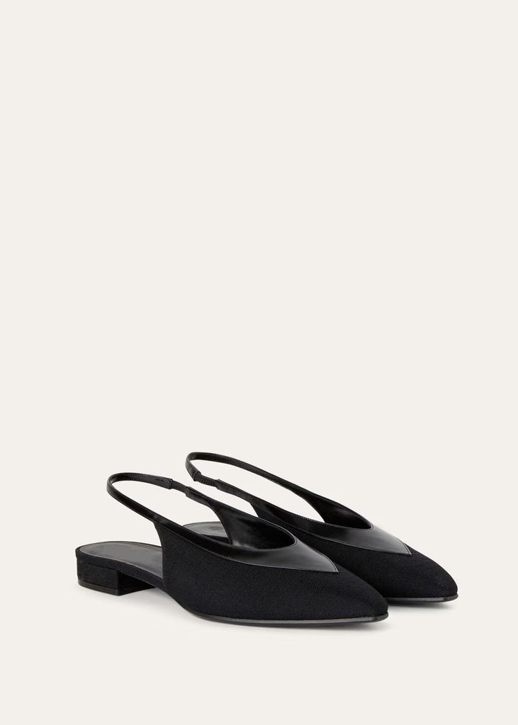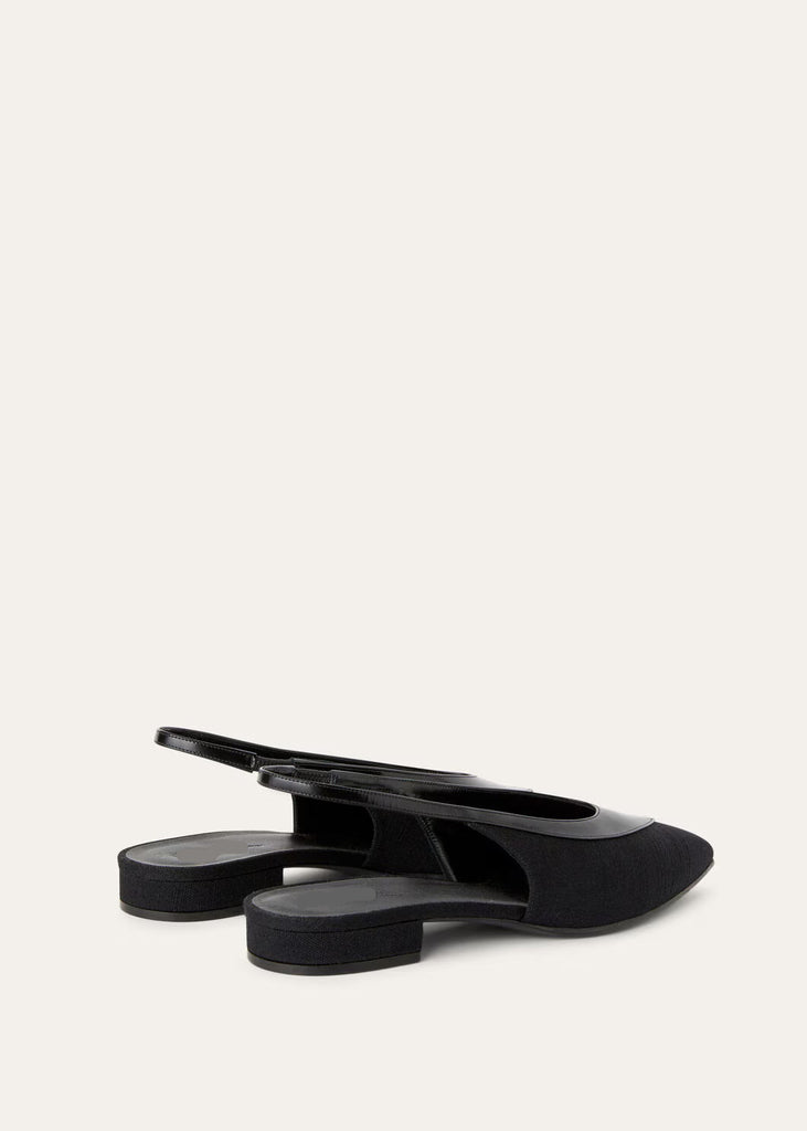 A slingback shoe with an elegant line and rounded toe, carefully crafted from slubbed wool. The distinctive design features a contrasting moulded insert in calfskin that gracefully follows the shape of the upper and forms the stylish back strap. For added comfort and a tailored fit, a small concealed elasticated panel is seamlessly integrated into the strap, making this pair an elegant and comfortable choice for any occasion.