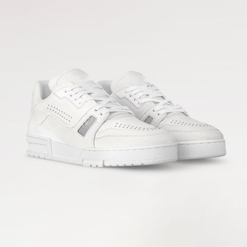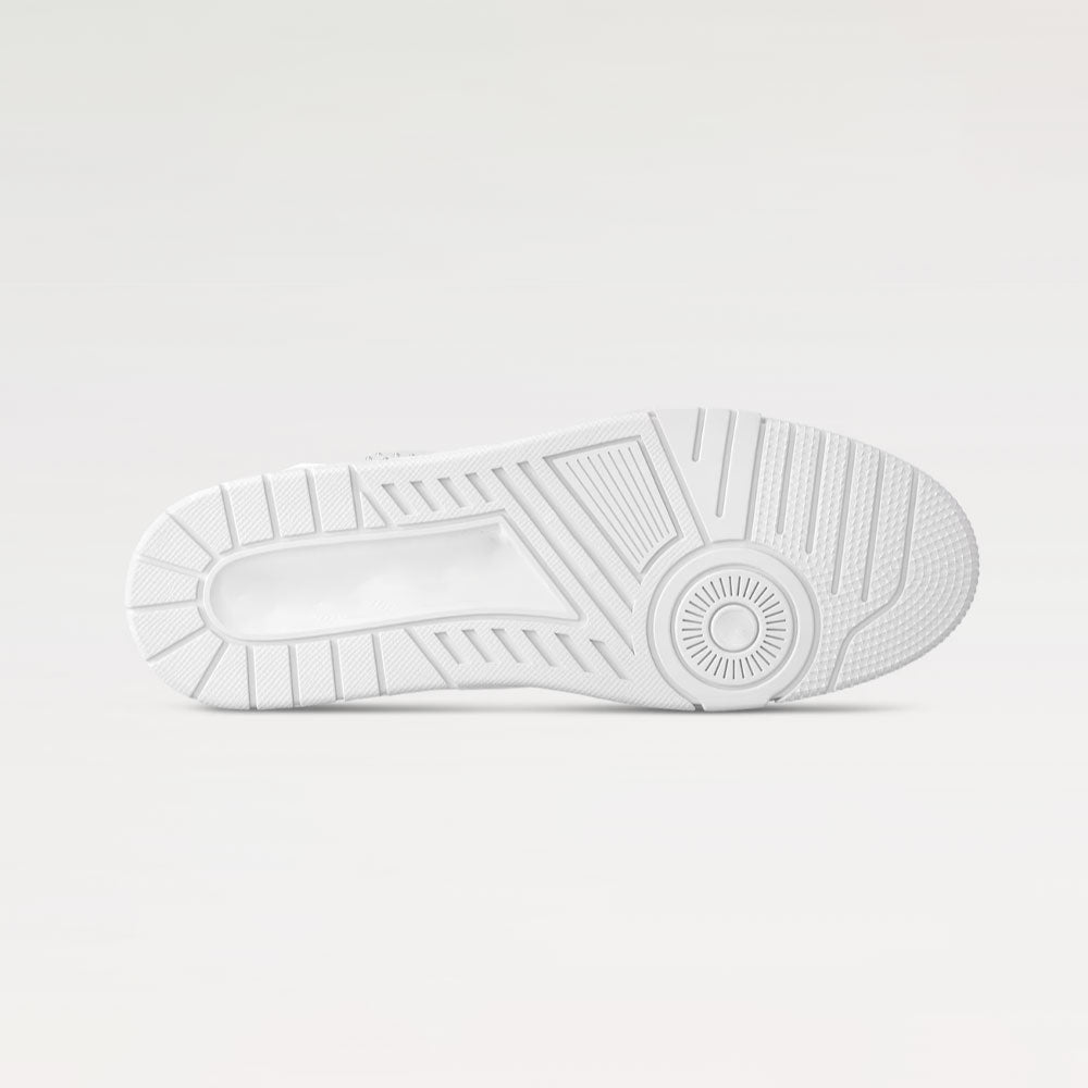 The iconic ?Trainer sneaker is revisited in grained calf leather with details in sier-toned metal, including tiny studs and the ?Initials. Originally designed by Virgil Abloh, this model was inspired by vintage basketball sneakers. It bears the? script signature on the side, while the technical rubber outsole is decorated with Monogram Flowers.