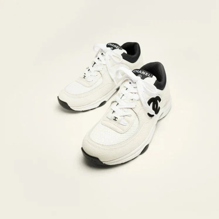 Sneakers Mesh Suede Calfskin & Grained Calfskin White & Black