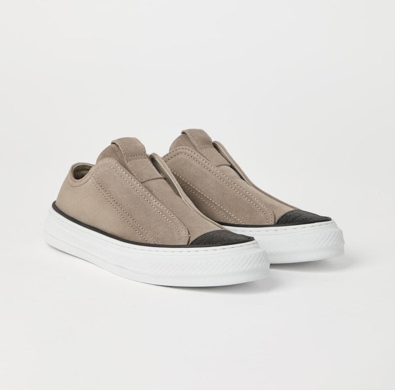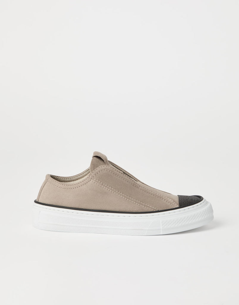 Suede slip-on sneakers with precious toe