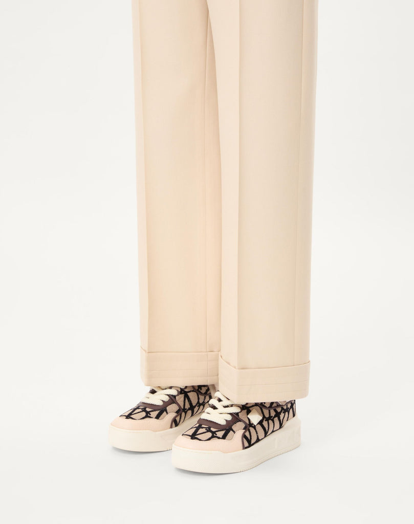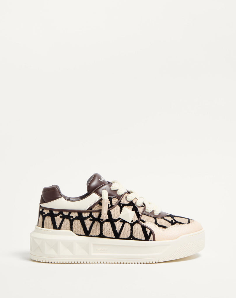 Garavani ONE STUD XL low-top sneaker in nappa leather and Toile Iconographe fabric
