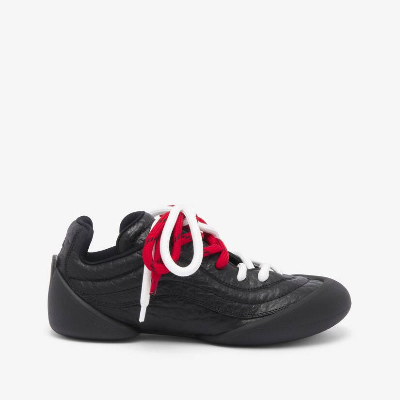 The Oversized Sneaker - Statement silhouette in off-white and orange leather, with heel counter debossed. Finished with a chunky rubber sole.