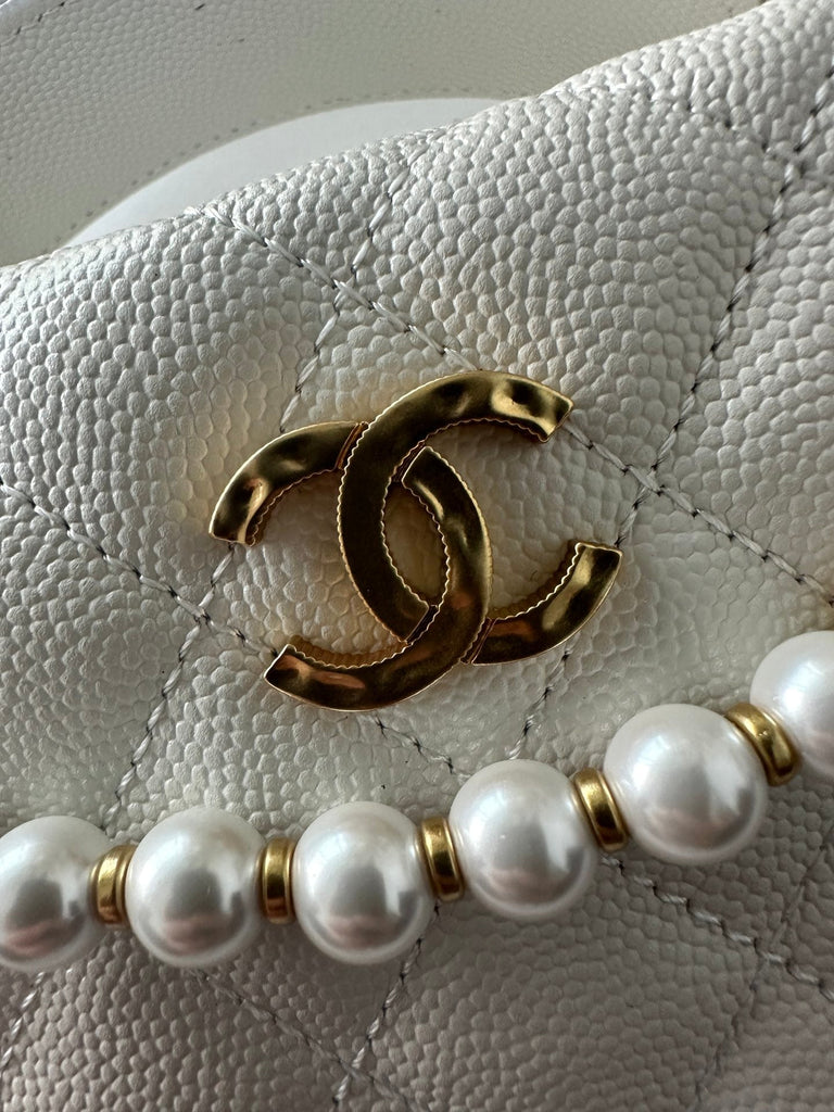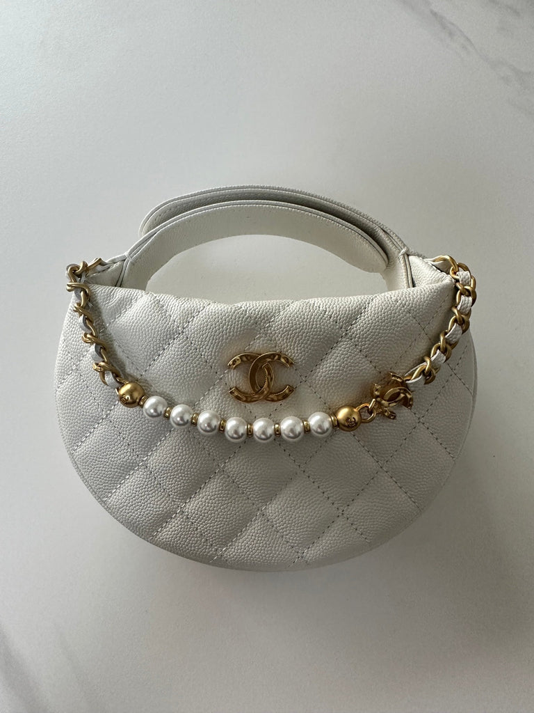MINI LOOP CHANGE WITH CHAINS WHITE Caviar Leather