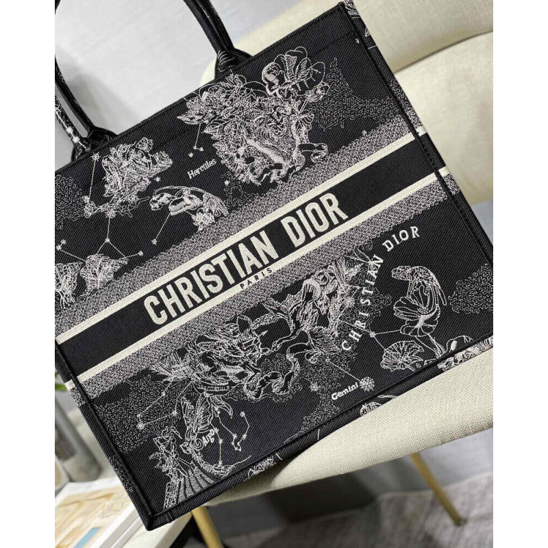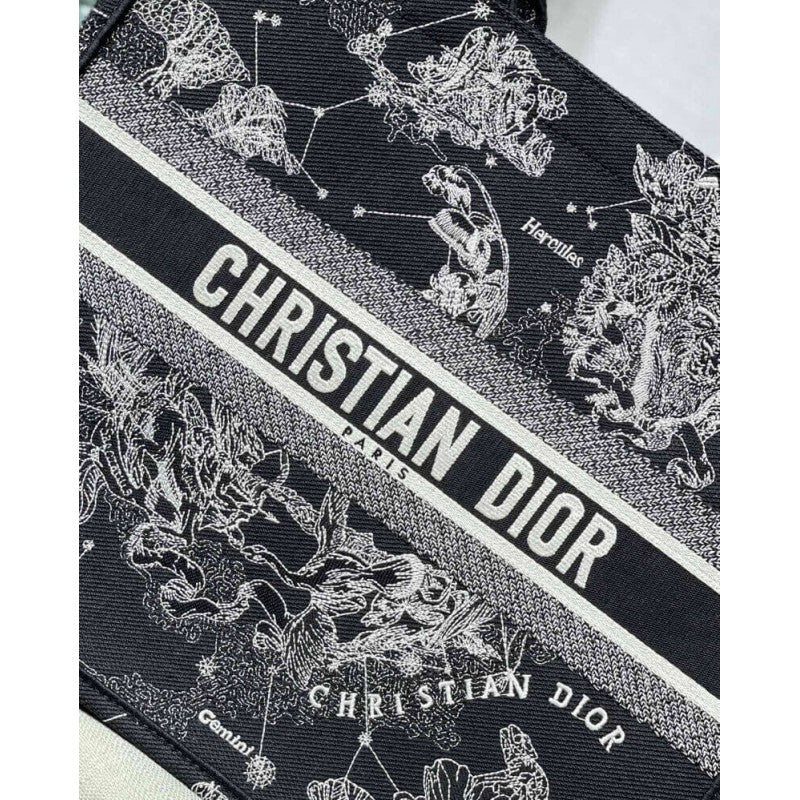 Introduced by Maria Grazia Chiuri, Creative Director of Christian , the Book Tote has become a staple of the aesthetic. Designed to hold all the daily essentials, the blue style is fully embroidered with a Toile de Jouy Zodiac motif, a variation of the House's hallmark pattern that honors Mr. 's passion for astrology. Adorned with the 'CHRISTIAN PARIS' signature on the front, the large tote exemplifies the House's signature savoir-faire and may be carried by hand or worn over the shoulder.
