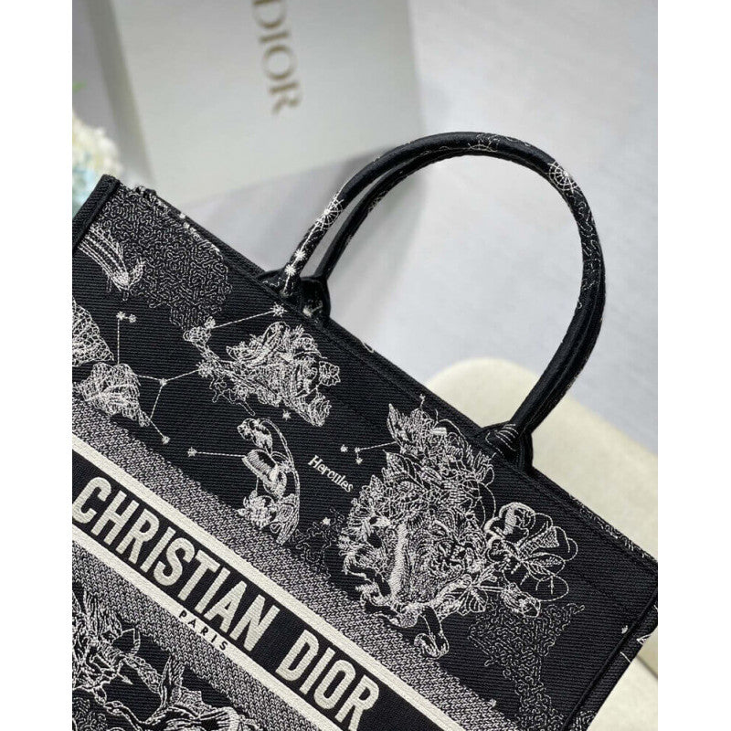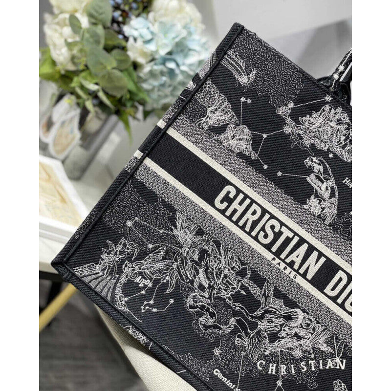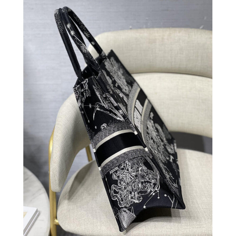 Large Book Tote Black Toile de Jouy Zodiac Embroidery M1286
