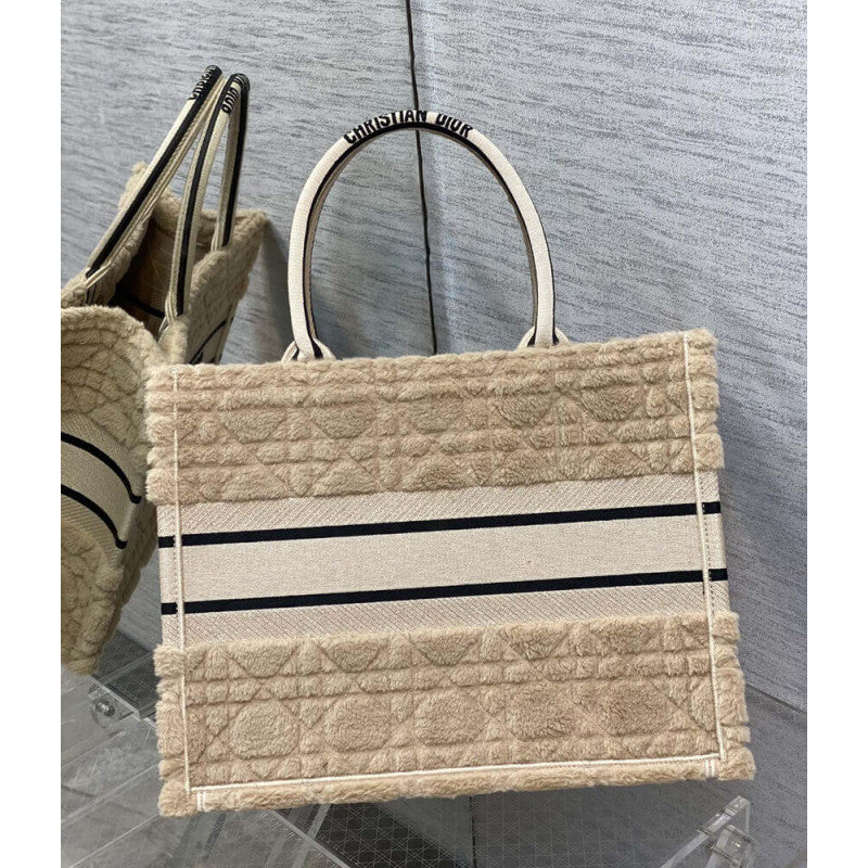 Christian   Medium Book Tote Beige Cannage Shearling M1296