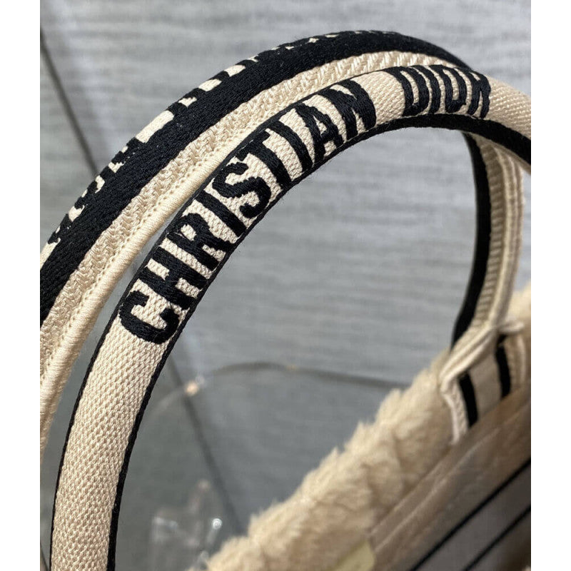 Introduced by Maria Grazia Chiuri, 's Creative Director, the Book Tote has become a staple of the aesthetic. Designed to hold all the daily essentials, the beige shearling style is fully embroidered with the hallmark Cannage motif, and is adorned with the 'CHRISTIAN PARIS' signature on the front. Exemplifying the House's signature savoir-faire, the large tote may be carried by hand or worn over the shoulder.