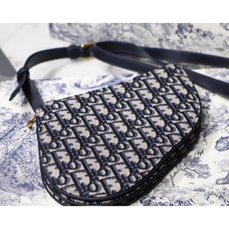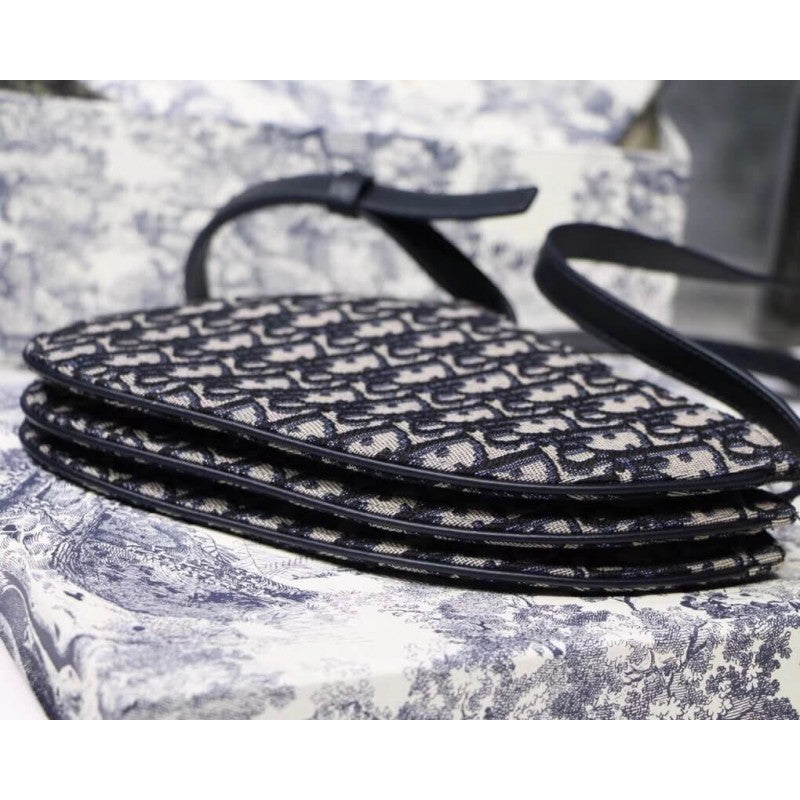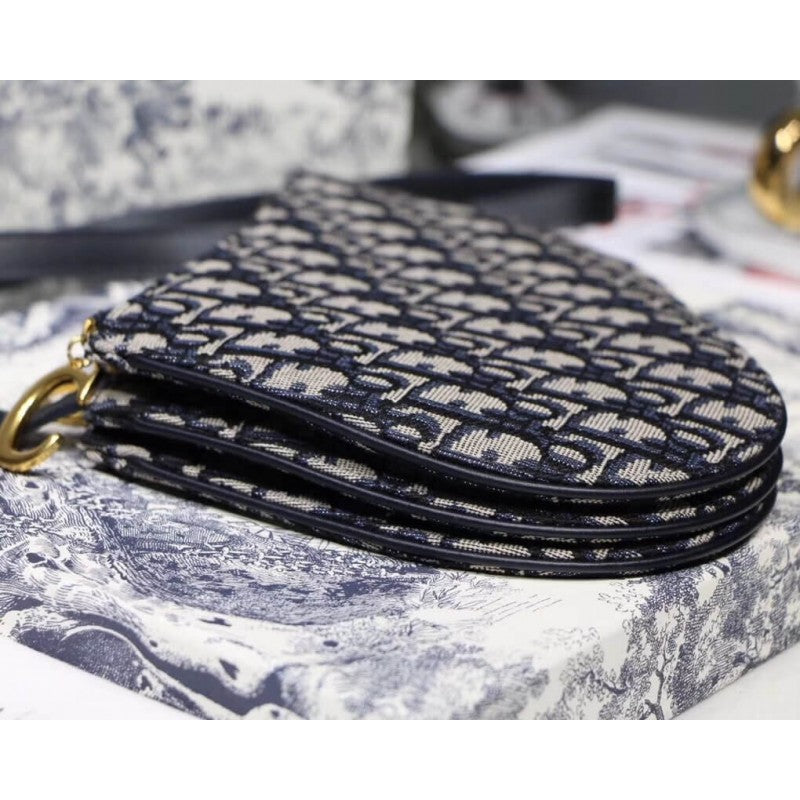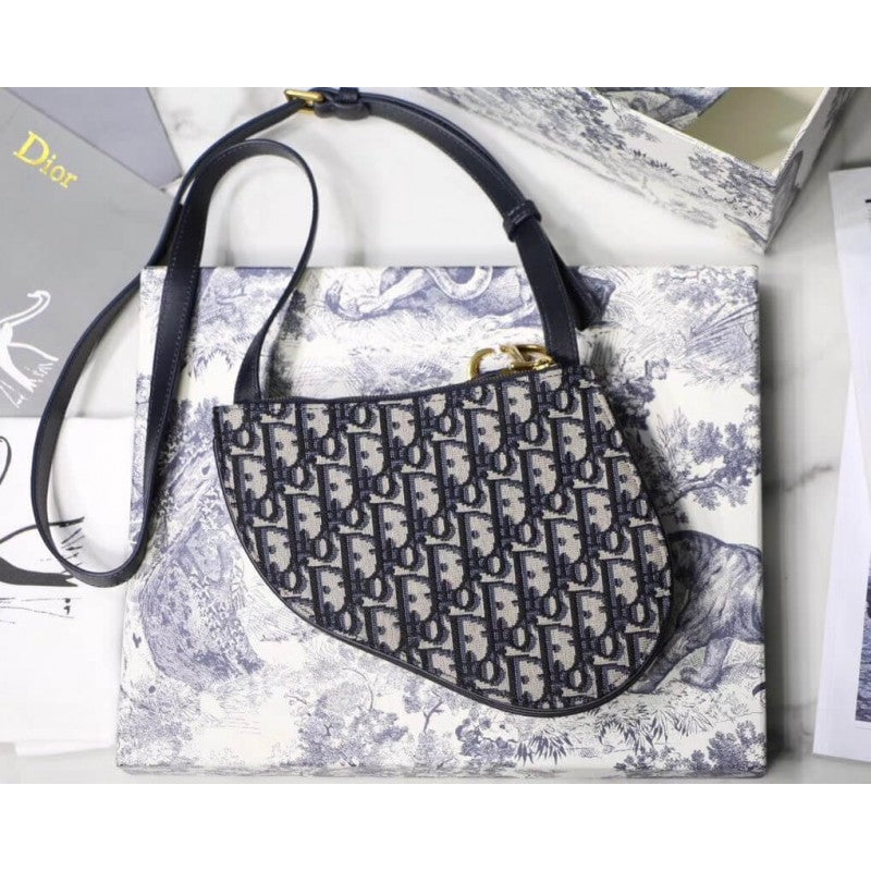 Saddle zipped clutch in blue Oblique jacquard canvas with blue calfskin leather details.