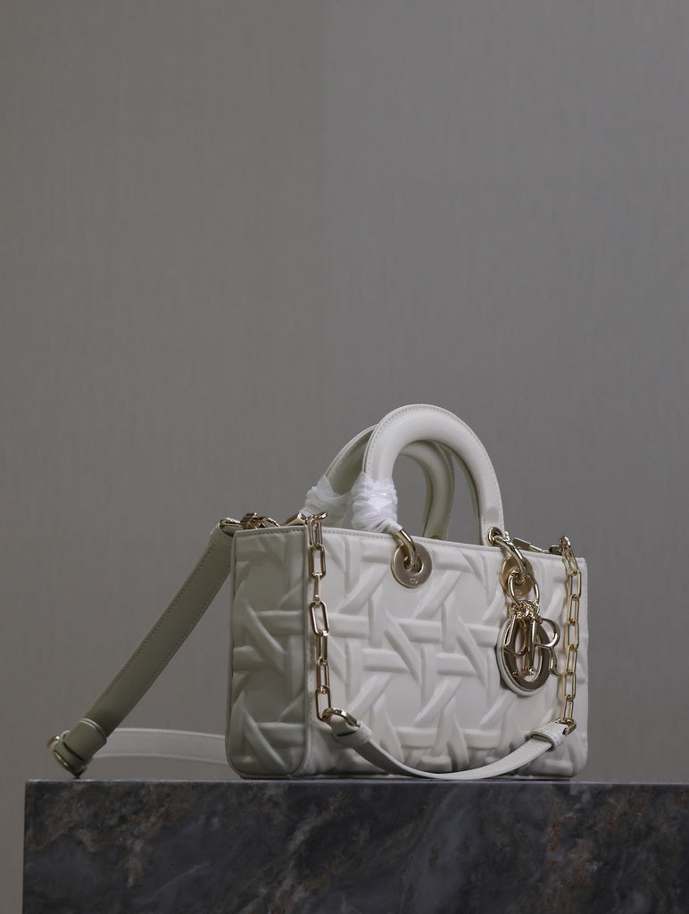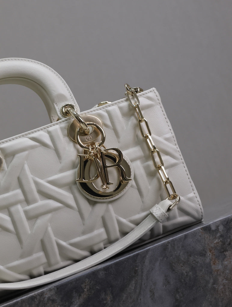 Latte Graphic Cannage Calfskin Medium Lady D-Joy Bag