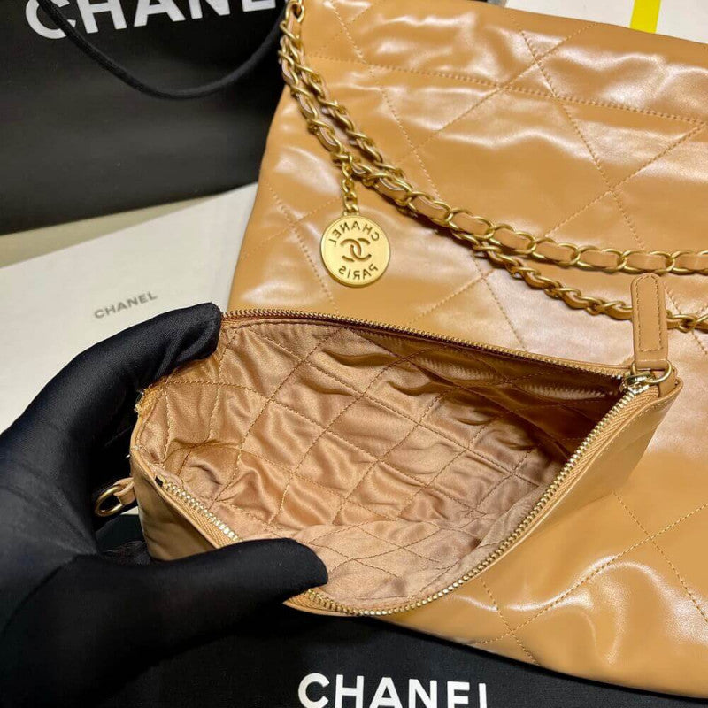 22 Small Handbag Shiny Calfskin AS3260 Camel Gold Metal