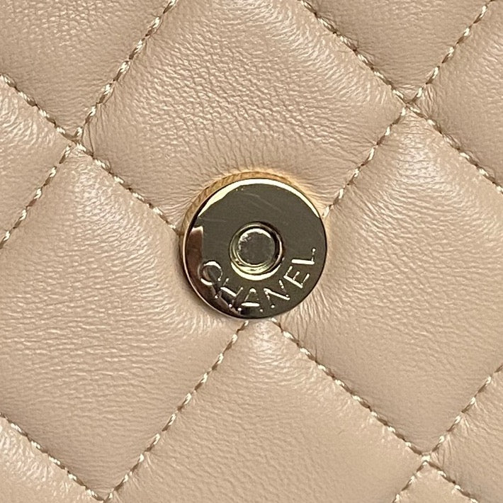 Lambskin with light gold chain. Exquisite and elegant. Super beautiful.?