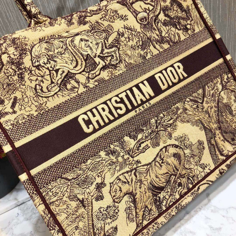 Book Tote bag in canvas embroidered with a black Toile de Jouy motif.