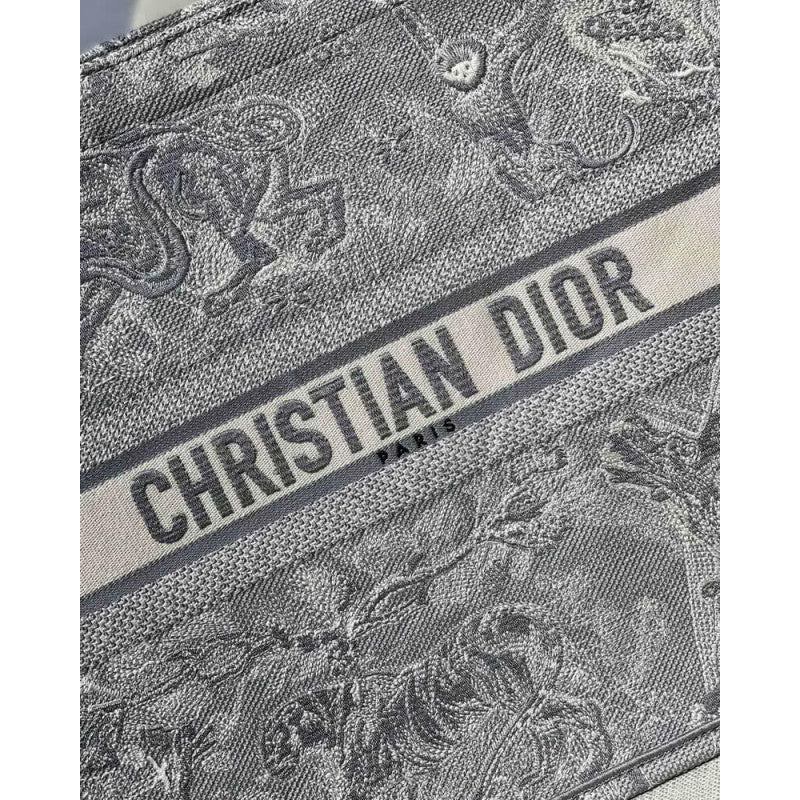 Grey Toile de Jouy embroidered book tote bag. Logo at the front.