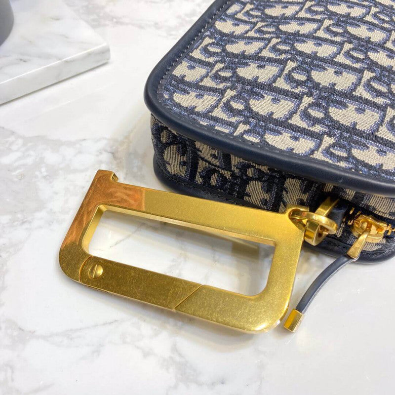 quake clutch in blue Oblique jacquard canvas, blue smooth calfskin details.