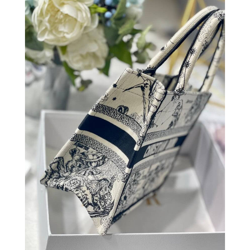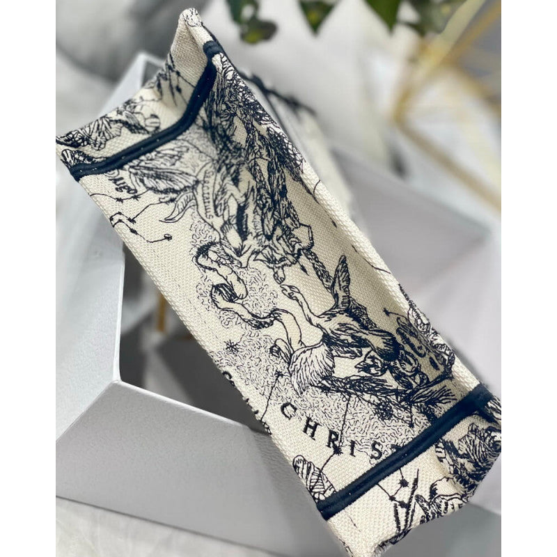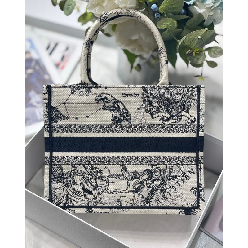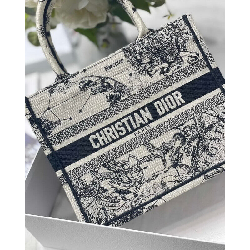 Introduced by Maria Grazia Chiuri, Creative Director of Christian , the Book Tote has become a staple of the aesthetic. Designed to hold all the daily essentials, the latte style is fully embroidered with a Toile de Jouy Zodiac motif, a variation of the iconic pattern that incorporate's Mr. 's passion for astrology. Adorned with the 'CHRISTIAN PARIS' signature on the front, the small tote exemplifies the House's signature savoir-faire and may be carried by hand.