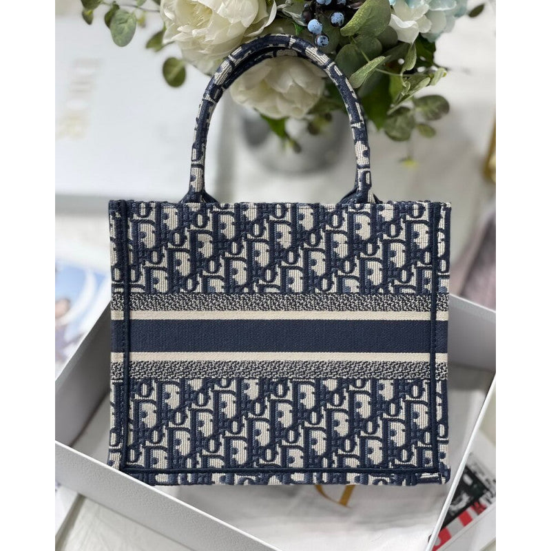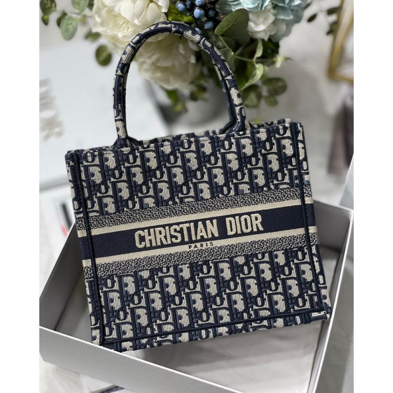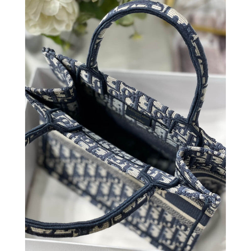 Introduced by Maria Grazia Chiuri, Creative Director of Christian , the Book Tote has become a staple of the aesthetic. Designed to hold all the daily essentials, the style is fully embroidered with a blue Oblique motif. Adorned with the 'CHRISTIAN PARIS' signature on the front, the small tote exemplifies the House's signature savoir-faire and may be carried by hand.