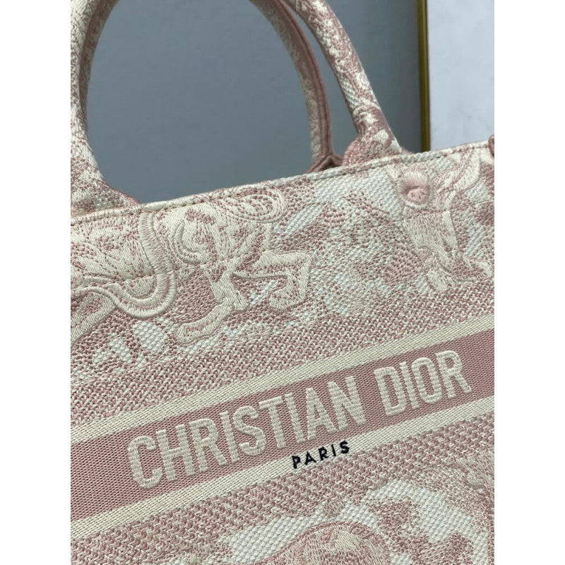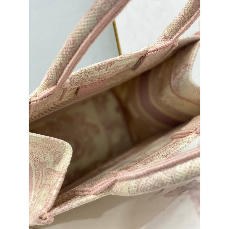 Christian   Small Book Tote Bag 26cm Toile De Jouy Reverse Embroidery Pink