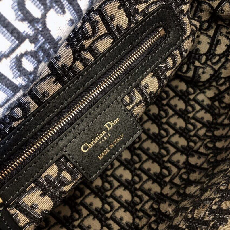 - Blue Oblique jacquard interior with leather diorawstring
