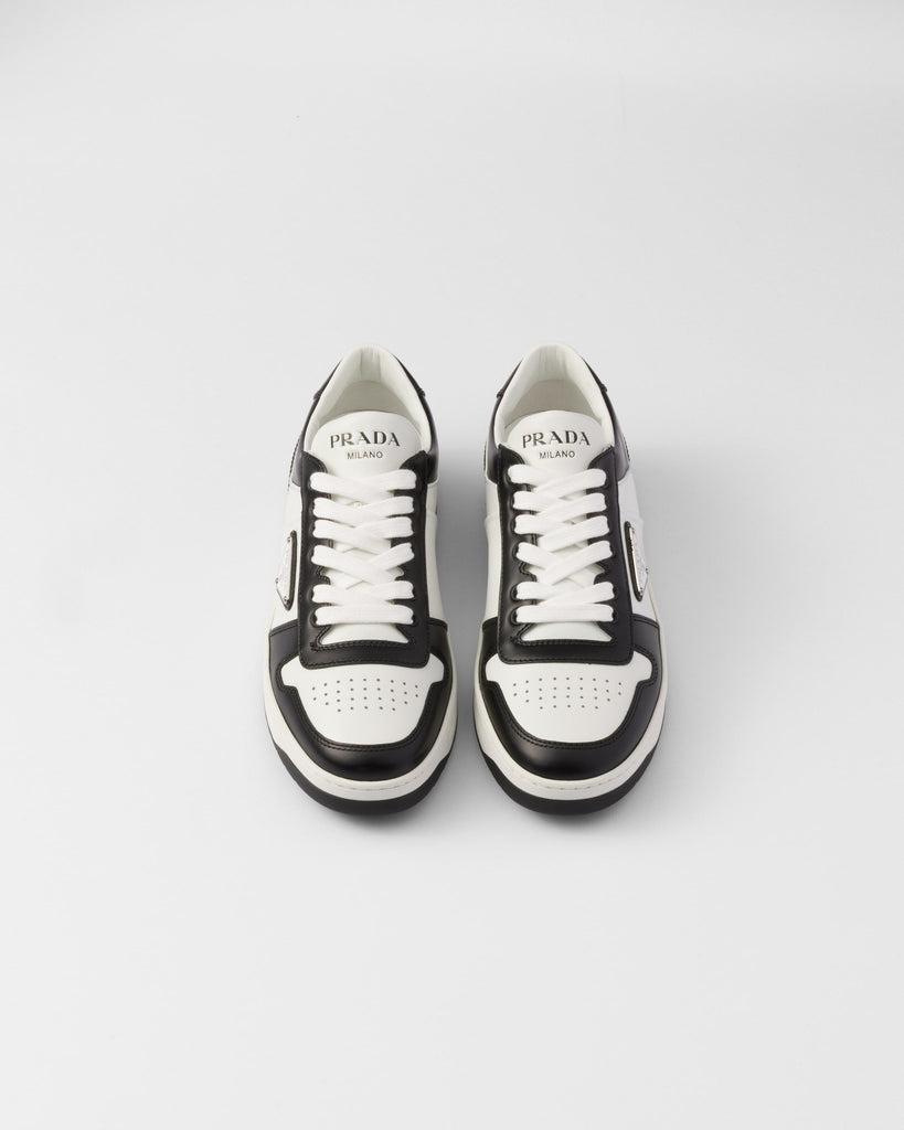 logo decorate the shoe, completed with the iconic geometric shape of the enameled metal triangle.?