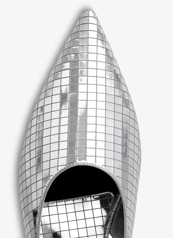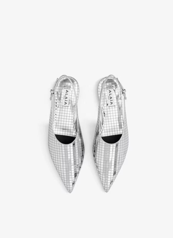 SILVER ART DECO FLAT SLINGBACKS IN MIRROR CALFSKIN