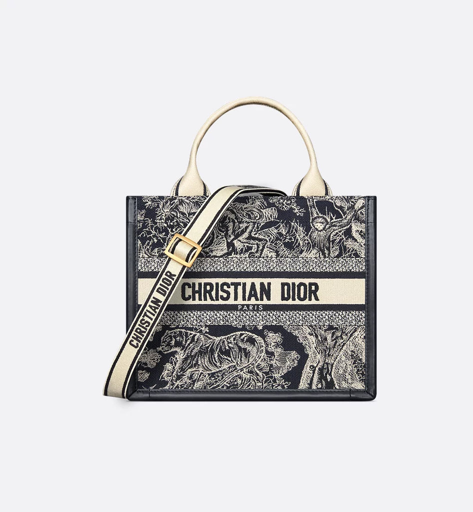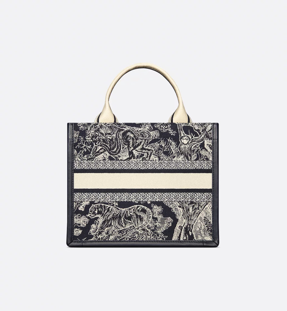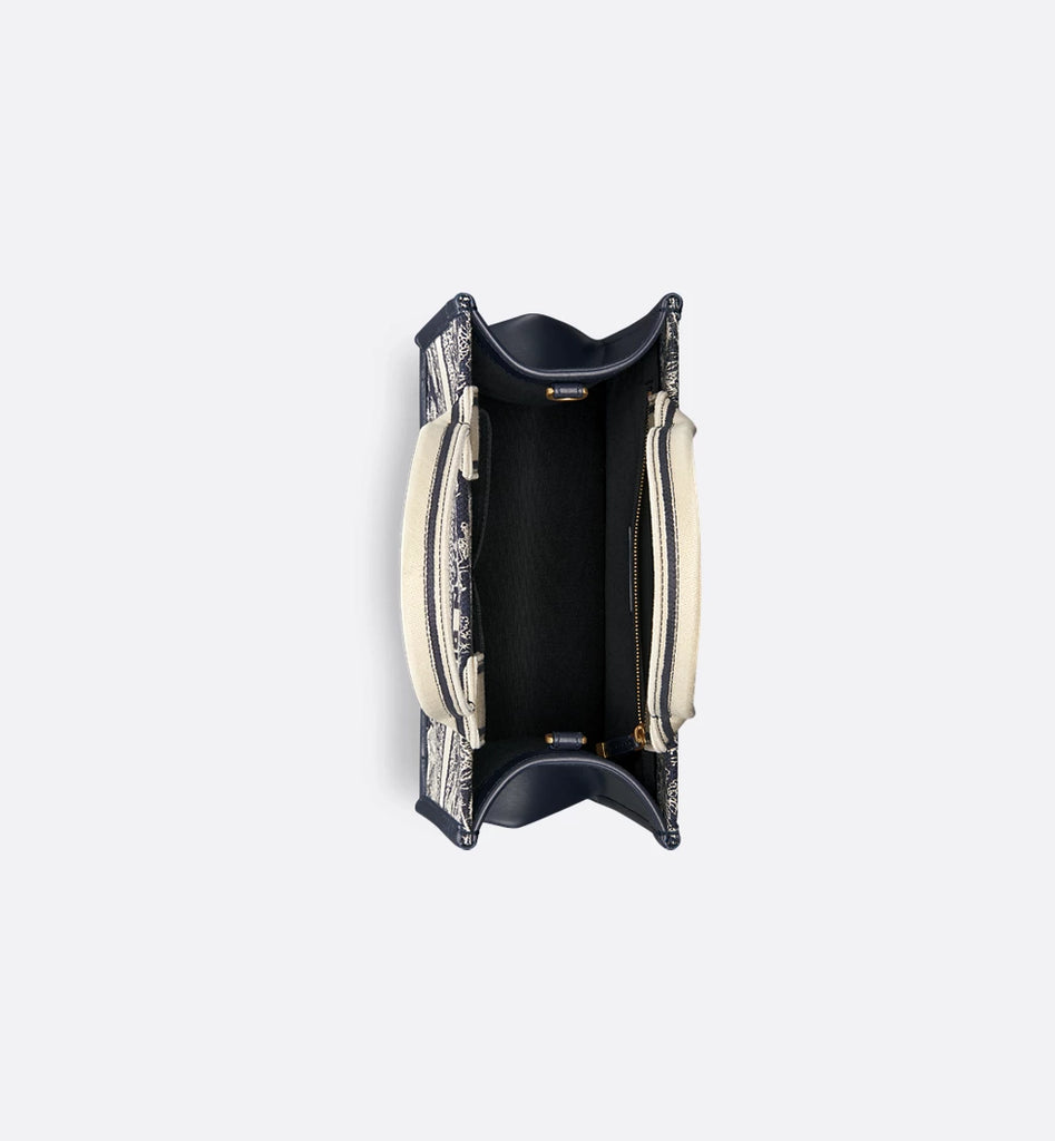 Small Book Tote Blue and Ecru Toile de Jouy Reverse