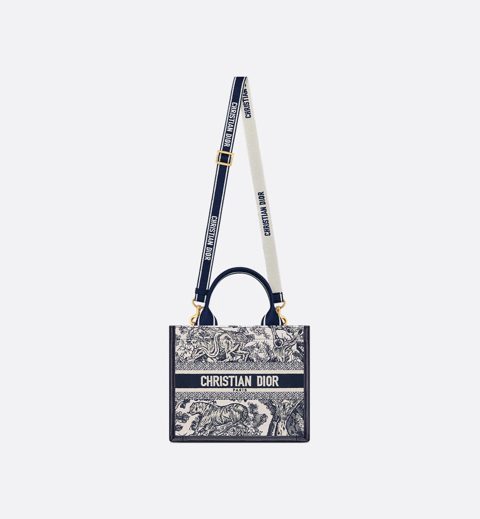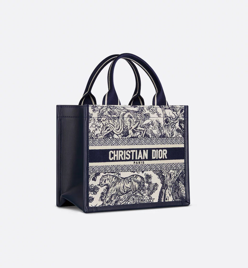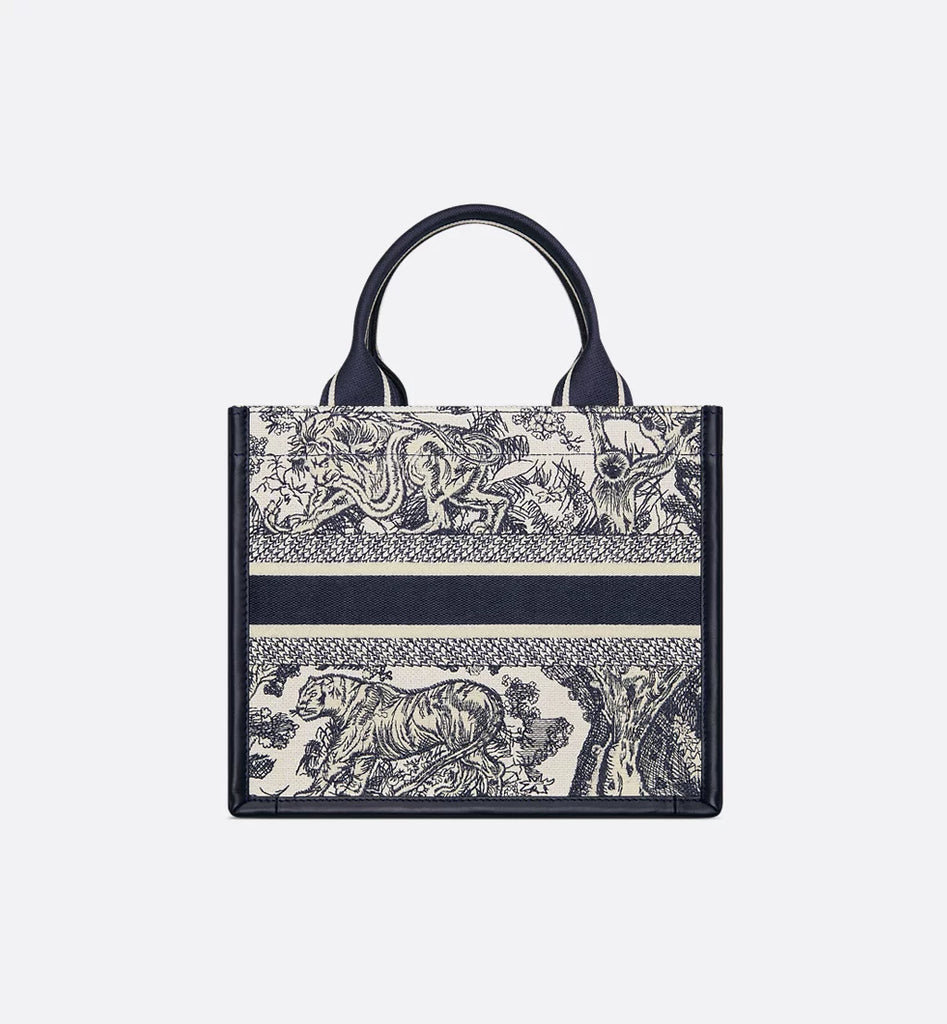 Small Book Tote White and Navy Blue Toile de Jouy