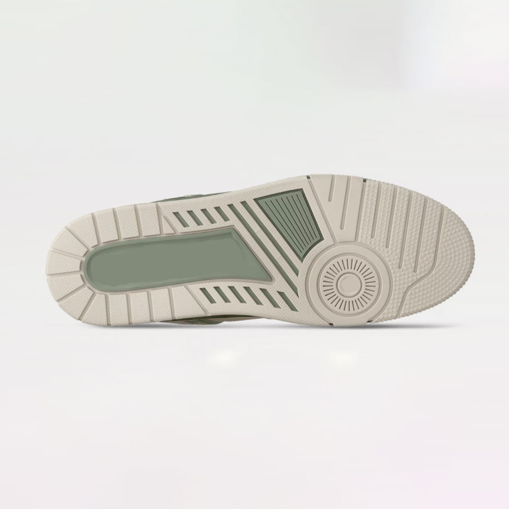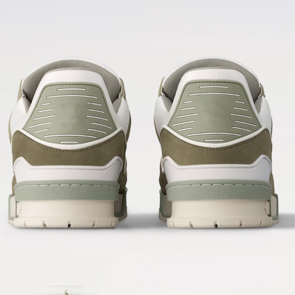 This version of the Trainer sneaker combines nubuck and grained calf leather in a smart, two-tone color palette that highlights its elaborately constructed upper. This iconic model was originally designed by Virgil Abloh and bears his script signature on the side. Inspired by vintage basketball sneakers, it comes on a technical outsole in two-tone rubber.