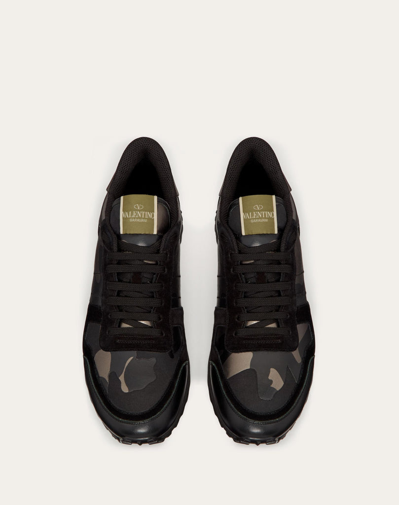 Garavani Rockrunner Camouflage Noir fabric and laminated nappa sneaker.