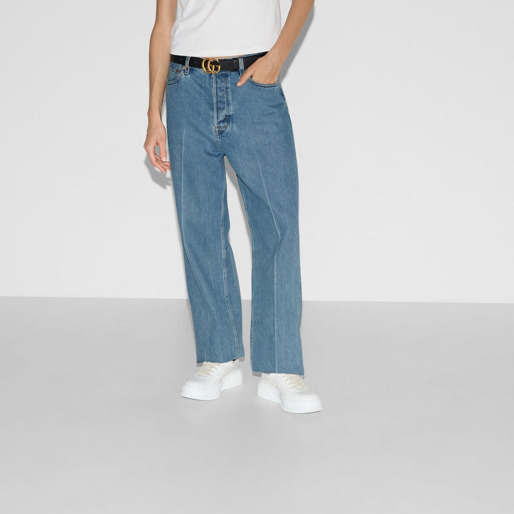 This sneaker's chunky silhouette gives it a playful, retro feel. GG's collections continue to look to other eras, finding inspiration in the everyday and bringing them to the present. Crafted from GG embossed leather, the monogram motif adds a logo twist.